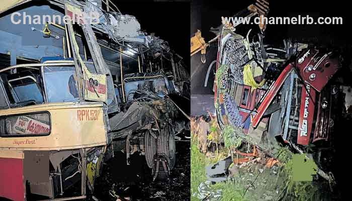 കൊട്ടാരക്കരയില് നിന്ന് കോയമ്പത്തൂരിലേക്ക് പോവുകയായിരുന്ന കെ.എസ്.ആര്.ടി.സി സൂപ്പര്ഫാസ്റ്റ് ബസിന് പിന്നില് വലതുവശത്തായാണ് ടൂറിസ്റ്റ് ബസ് ഇടിച്ചത്. മുന്നിലുണ്ടായിരുന്ന കാറിനെ അമിത വേഗത്തില് മറികടക്കാനുള്ള ശ്രമത്തിനിടെയാണ് അപകടം.