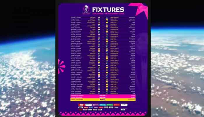 ഒക്ടോബർ 5ന് ടൂർണമെണ്ടിൻ്റെ ഉദ്ഘാടന മത്സരത്തിൽ ഇംഗ്ലണ്ട് ന്യൂസിലൻഡിനെ അഹമ്മദാബാദ് നരേന്ദ്ര മോദി സ്റ്റേഡിയത്തിൽ നേരിടും. അഞ്ച് തവണ ലോകകപ്പ് ജേതാക്കളായ ഓസ്ട്രേലിയെ ഒക്ടോബർ 8ന് ചെന്നൈയിൽ ഇന്ത്യ നേരിടും.